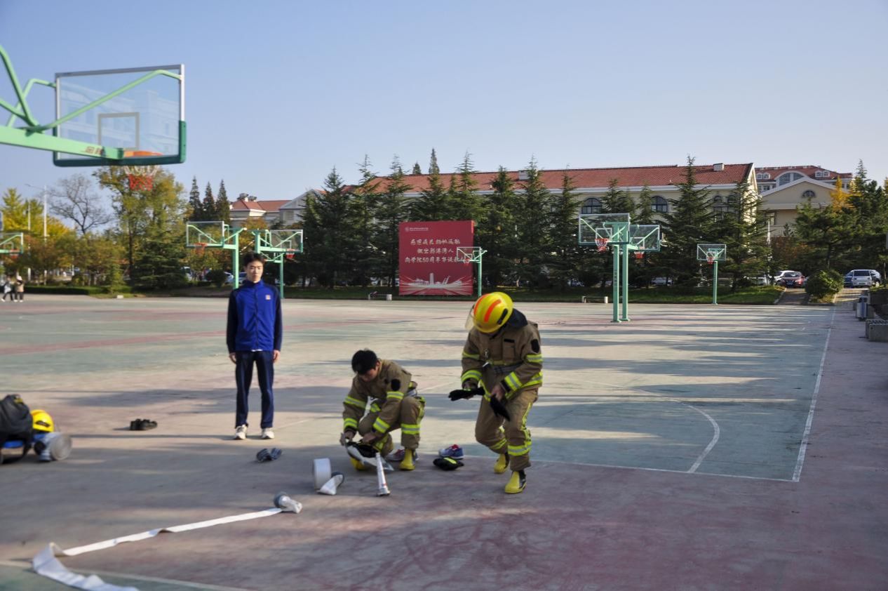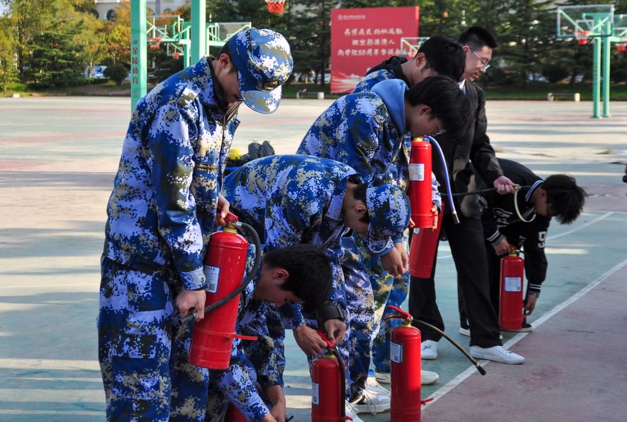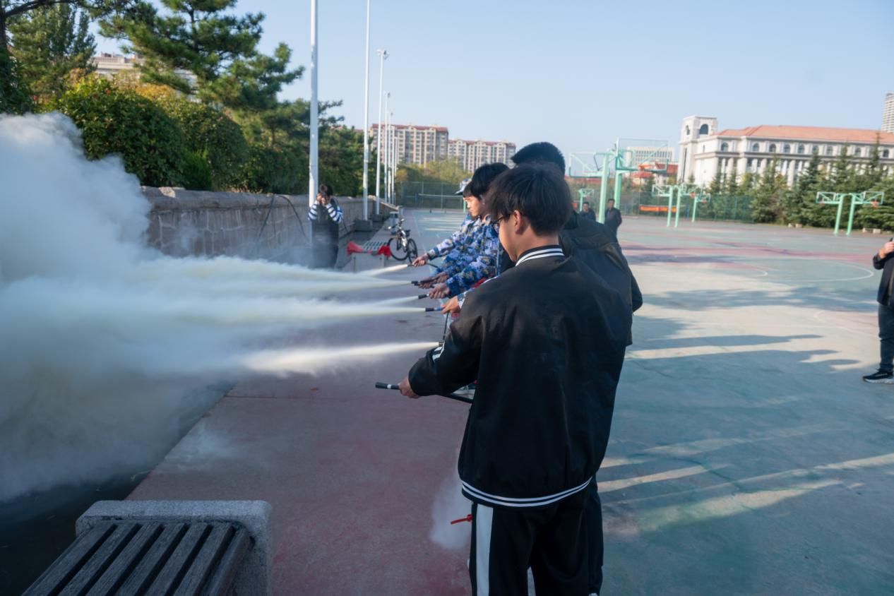 仪式上,王义伟强调消防安全是校园运行的“生命线”,更是保障师生生命安全与立德树人工作的重要基础。本次宣传月将围绕“安全用火用电”核心,通过隐患排查、应急演练、知识普及等系列活动,推动消防安全治理向事前预防转型,并呼吁师生将“预防为主、防消结合”的方针融入日常,共同筑牢校园安全防线。应急管理学院兼职应急队伍带来专业消防展演,队员们动作规范、配合默契,生动展示了初起火灾处置流程。现场还设置应急装备观摩区,师生近距离了解消防设施功能。随后,李煌结合实物,详细讲解灭火器的原理、适用场景与操作步骤,并组织同学们分组实操,确保大家熟练掌握“提、拔、握、压”的使用方法,切实提升应急处置能力。